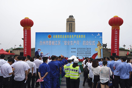 公司參加臺州市“安全生產(chǎn)月”宣傳活動 6月7日上午,公司響應臺州市安全生產(chǎn)委員會“安全生產(chǎn)月”活動號召,在市國資委的組織下,積極參加市安委會、椒江區(qū)安委會聯(lián)合主辦的臺州市暨椒江區(qū)“安全生產(chǎn)月”啟動儀式。