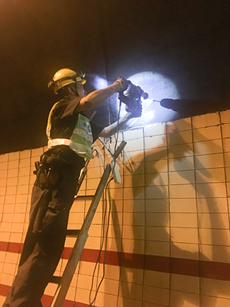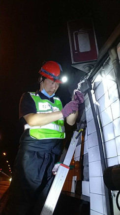 圖為工作人員安裝消防燈燈泡 大溪嶺—湖霧嶺隧道全長4116米,為保障隧道內(nèi)行車安全、暢通、舒適,定期組織安排清洗隧道兩壁墻體、邊溝,檢修內(nèi)部各項(xiàng)機(jī)電設(shè)施成了維養(yǎng)中心每季必不可少的工作之一。而每次清洗檢修必將涉及封道,為最大程度減少因封道對社會造成的負(fù)面影響,中心工作人員早在一周前就對隧道內(nèi)各項(xiàng)損壞機(jī)電設(shè)備進(jìn)行摸底統(tǒng)計(jì),以便合理制定維修方案和安排施工人員。 12號早上7點(diǎn),隨著封道工作就緒,兩組清洗隊(duì)伍分別從隧道中部開始向兩頭清洗,六組專業(yè)燈具維修人員站在貨車腳手架上由北往南逐個推進(jìn),發(fā)現(xiàn)一盞修復(fù)一盞,或更換燈管、或更換觸發(fā)器、或更換鎮(zhèn)流器,對于一些同時有多個配件壞死或腐蝕嚴(yán)重的燈具就直接采取整體更換措施,大大提高了工作效率。而中心工作人員除了現(xiàn)場全程協(xié)調(diào)管理以外,還負(fù)責(zé)修復(fù)隧道兩壁逃生標(biāo)志及報警電話等多個指示牌。按照之前制定的計(jì)劃,六人兵分兩組由隧道兩頭分別向中間修復(fù),這樣既能與其他工作同時進(jìn)行又不造成相互干擾。另外一人則配合隧道所一起在登高車協(xié)助下,對洞內(nèi)各類攝像頭進(jìn)行逐個清理,全場人員各司其職,各盡其責(zé),現(xiàn)場一派忙碌的景象。 4公里多長的隧道,由于流動性差,洞內(nèi)空氣質(zhì)量比霧霾嚴(yán)重數(shù)倍,僅一只口罩根本凈化不了廢氣,但由于時間緊,任務(wù)重,中心隊(duì)員和施工人員顧不上惡劣的環(huán)境,努力和時間賽跑,兩日下來共修復(fù)(清理)損壞燈具100余套,各類標(biāo)志指示牌40余塊,攝像頭30余個,恢復(fù)了隧道內(nèi)各項(xiàng)機(jī)電設(shè)施的正常運(yùn)行,排除一切安全隱患,有效保證了隧道安全暢通。 項(xiàng)寅曉