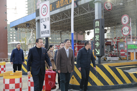 圖為市行政服務(wù)中心黨委副書記金偉一行在臺州收費站參觀學習