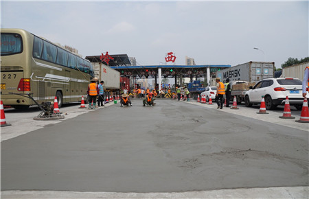 近日,隨著混凝土養(yǎng)護(hù)的結(jié)束,溫嶺西收費(fèi)站車(chē)道維修工程圓滿(mǎn)完工,收費(fèi)車(chē)道恢復(fù)正常通行。此次工程對(duì)溫嶺西收費(fèi)站第四、五車(chē)道進(jìn)行了徹底維修,包括挖除原車(chē)道破損路面、注漿、安放鋼筋網(wǎng)、澆筑混凝土、混凝土養(yǎng)護(hù)、標(biāo)線(xiàn)恢復(fù)等工序。