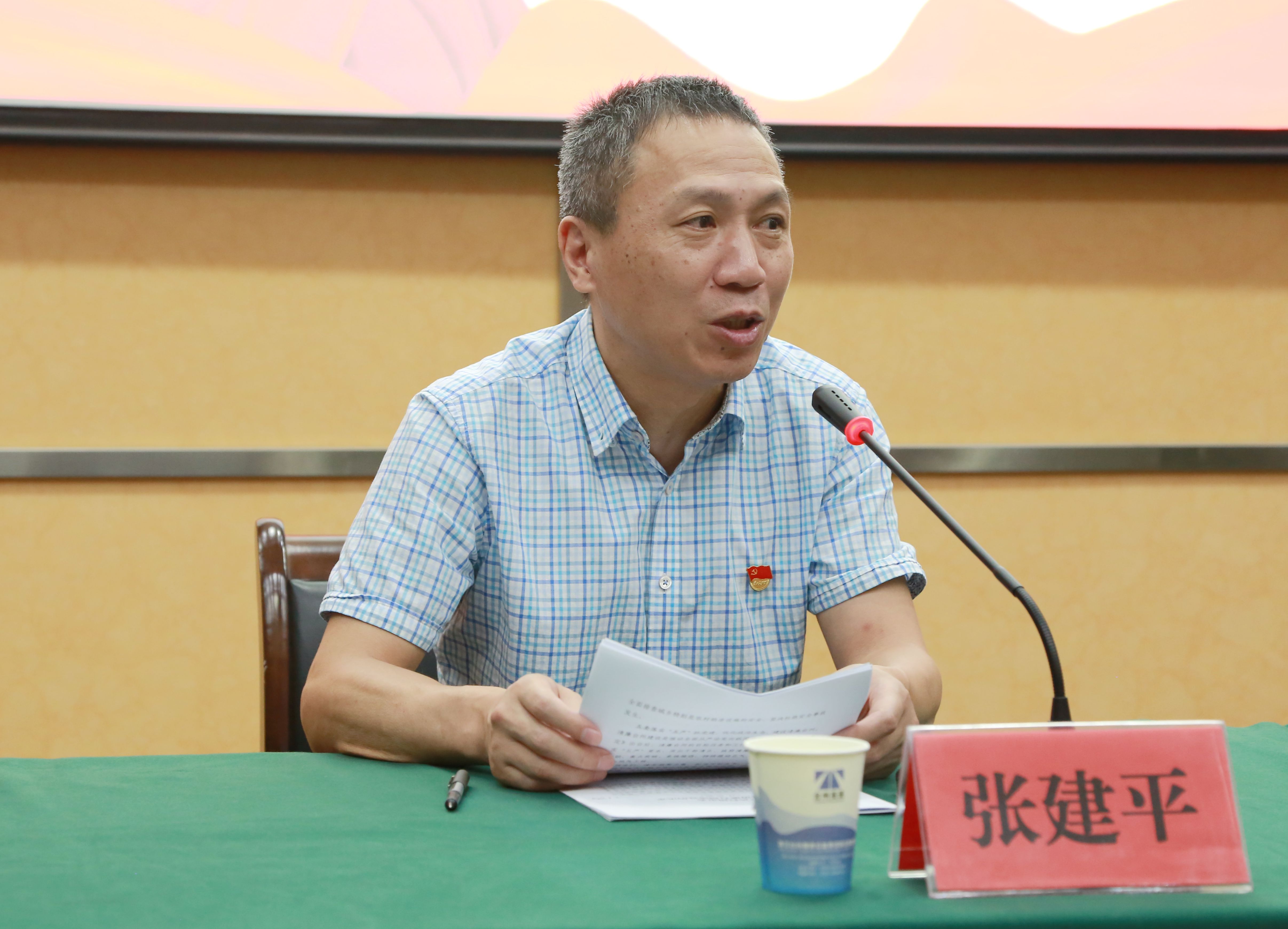 圖為集團(tuán)黨委副書(shū)記張建平傳達(dá)文件精神