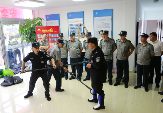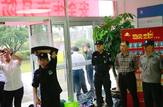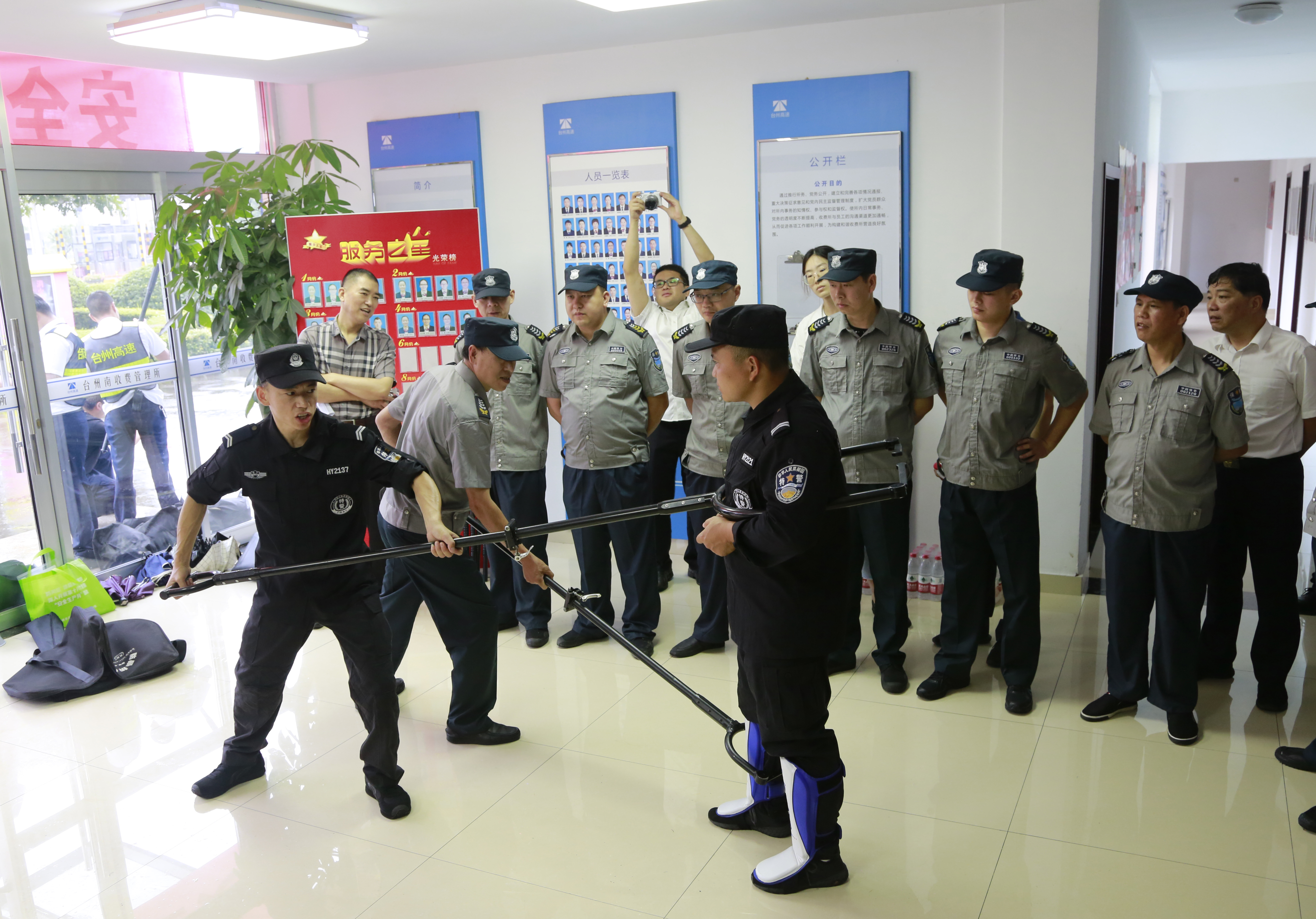 演練開(kāi)始前,盧尚明對(duì)防爆盾牌、防爆鋼叉、抓捕器、警棍等各類防爆器材的功能和使用方法進(jìn)行一一講解,并示范操作,以及帶領(lǐng)大樓浙師大印象物業(yè)人員現(xiàn)場(chǎng)練習(xí)器械使用。