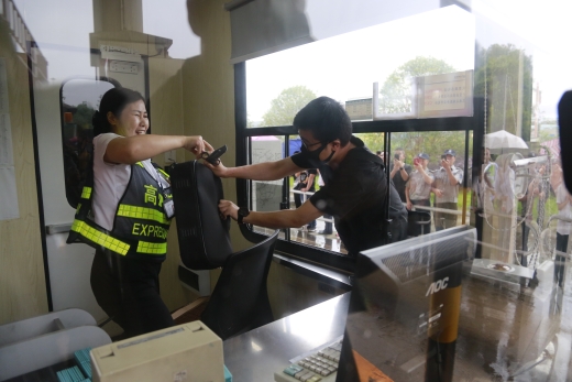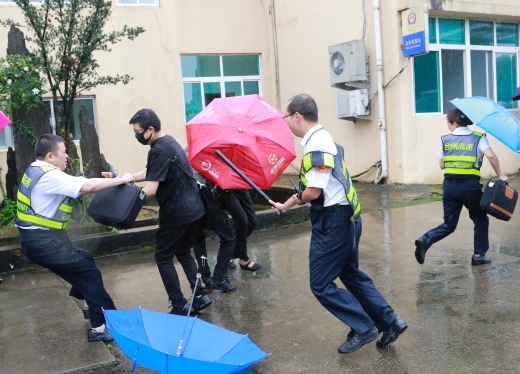 隨后,多名參演員工冒雨模擬收費(fèi)崗?fù)ず土嘘?duì)下崗遭遇“歹徒”搶劫的情景開(kāi)展防盜搶演練?,F(xiàn)場(chǎng),2名蒙面歹徒執(zhí)仿真刀、軟棍威脅收費(fèi)員交出現(xiàn)金,危機(jī)之中,收費(fèi)站立即啟動(dòng)應(yīng)急處置預(yù)案并報(bào)警求助,收費(fèi)員有效與歹徒周旋,應(yīng)急處置組人員迅速攜鋼叉、橡膠棒、勞動(dòng)工具等赴現(xiàn)場(chǎng)支援,值班領(lǐng)導(dǎo)、收費(fèi)班長(zhǎng)、監(jiān)控員合力協(xié)作應(yīng)對(duì)歹徒,防盜搶演練順利結(jié)束。