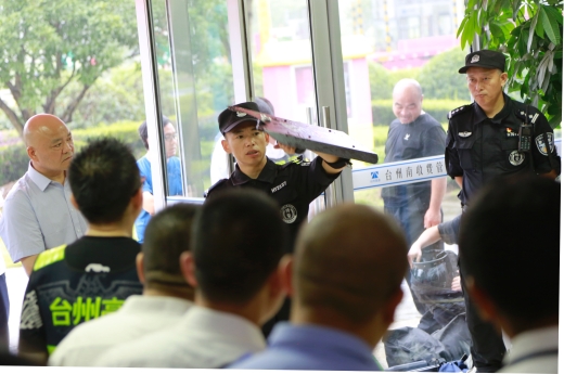 本次活動(dòng)分成防暴器械使用培訓(xùn)、器械使用練習(xí)和防盜搶應(yīng)急演練三個(gè)環(huán)節(jié),以培訓(xùn)和演練相結(jié)合的形式開(kāi)展,以有效提高一線職工防暴器械使用技能和突發(fā)事件應(yīng)急處置能力?;顒?dòng)邀請(qǐng)了黃巖公安分局巡特警大隊(duì)大隊(duì)長(zhǎng)盧健星,該大隊(duì)獵豹突擊隊(duì)隊(duì)員、專職教官盧尚明到場(chǎng)指導(dǎo)。