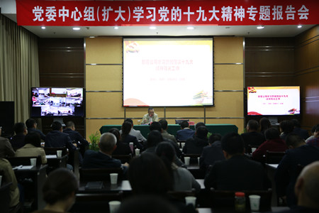 為了深入學(xué)習(xí)好、宣傳好、領(lǐng)悟好、落實(shí)好黨的十九大精神和習(xí)近平新時代中國特色社會主義思想,10月30日晚上,集團(tuán)利用周一晚上的時間在天和大廈26樓召開了黨委中心組(擴(kuò)大)學(xué)習(xí)會,特別邀請了市直機(jī)關(guān)工委副書記李欠梅做了題為《邁向新時代開啟新征程續(xù)寫新篇章》的專題解讀和輔導(dǎo)報告。集團(tuán)黨委副書記、總經(jīng)理張建平對學(xué)習(xí)領(lǐng)會落實(shí)黨的十九大精神進(jìn)行了全面部署,要求在集團(tuán)上下迅速掀起學(xué)習(xí)熱潮,廣大員工要立足崗位加油,推動集團(tuán)實(shí)現(xiàn)“浴火重生謀新篇”的目標(biāo)。大樓全體員工參加現(xiàn)場會議,各所、中心的非當(dāng)班員工通過遠(yuǎn)程視頻會議系統(tǒng)同步收看輔導(dǎo)講座。
